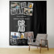 Bold Typography Faux Silver Foil On Black, Congratulations To The Graduate, Class Of 2026/2027, Featuring A Layout Of Eleven Multi Photo Collage Graduation Party Photo Booth / Backdrop / Tapestry.