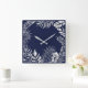 Silver Gray Blue Navy Palm Botanical Metallic Square Wall Clock