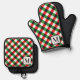 Red and Green Xmas Plaid Gingham White Monogram Oven Potholder set. | Featuring an easy-to-personalize template.