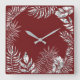 Silver Gray Burgundy Red Palm Botanical Metallic Square Wall Clock