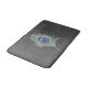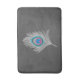Vector drawing of a peacock feather, enhanced and rendered in a soft conte crayon effect - light silver gray / grey, with gray, turquoise and fuchsia pink eye, on a deep graphite gray background Bathmat