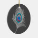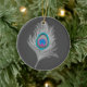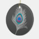 Silver Gray / Grey Peacock Feather on Graphite Ceramic Ornament