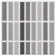 Geometric linear, rectangle, striped pattern of silver, gray and black hues.