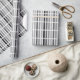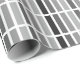Geometric linear, rectangle, striped pattern of silver, gray and black hues.