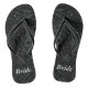 These custom flipflops have a silver gray kaleidoscope pattern of specks on a black background. There is a placeholder on each flipflop with the word Bride on them; the text can be easily customized on the template forms.