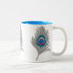 Silver Gray & Turquoise Peacock Feather Two-Tone Coffee Mug
