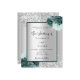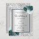 Faux silver looking background decorated with green florals, flowers and faux silver glitter, sparkles. Personalize and add your names and wedding details. Black letters.