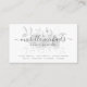 Elegant, Feminine & Modern, Silver Grey Floral element w/ Script - Personalized business card template design. Great for hairstylists, makeup artists, lash estheticians, nail specialists and more.