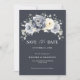 Elegant floral winter wedding Save the date card features elegant grey , ivory and silver watercolor flower bouquet frosty-hued greenery. Please contact me for any help in customization or if you need any other product with this design.