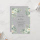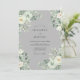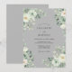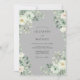 This design features a sophisticated silver grey backdrop adorned with delicate watercolor florals. Creamy white roses and silver dollar eucalyptus leaves create a serene and elegant atmosphere. The soft, muted palette is perfect for a refined winter or classic springtime nuptial. This artwork captures a sense of timeless grace through its painterly botanical details.