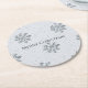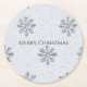 Silver Grey Winter Snowflakes Christmas Round Paper Coaster