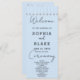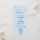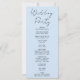 On the front side of the program, the couple's names, significant wedding date, venue details, and comprehensive ceremony information are elegantly displayed against a serene light blue backdrop. Embracing simplicity and elegance, the majority of the text is presented in a clean and easily readable block font.