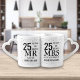 Silver Hearts 25th Anniversary Mr Mrs Right Coffee Mug Set