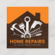 A timber wood layer rooftop silhouette features a silver creation of an assortment of handyman tools surrounding a smaller home with a colorful window. Near the base of the card is the business name and a slogan option to publicize your services. ; You can change the caption remarks to the slogan "Your One-Stop Renovation Specialist" to suit your own service needs.