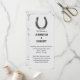 Celebrate your special day with this fun and romantic themed set. Perfect for any rustic, western, country or vintage theme. The background is bright white. In the center is a silver horseshoe for good luck with four silver embellishments. Each wedding suite piece in this set coordinates but doesn't match exactly. This set has invitations, save the date cards, response cards, thank you cards, table number tent cards, envelope seals, wine labels, binders, return address labels and many more day-of wedding stationery pieces, favors, and gifts available. Use the envelope seal stickers for any of your DIY gifts - these are available in both large and small sizes! All elements are printed on our high quality products, they do not include any real gold, jewels, embossing, or other textile elements. All designs are copyright Noteable Expressions, Inc. All rights reserved.