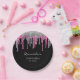 Silver Hot Pink Glitter Drips Black Quinceañera Paper Plates