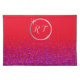 Pretty red background with purple glitter and silver initials monogram inside a circle for you to personalize.