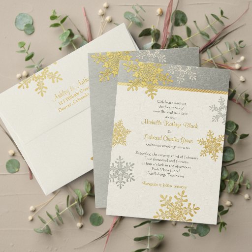Silver Gold Snowflake Wedding StationeryDesigned by Shannon S