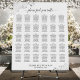 This beautiful 30 table traditional wedding seating chart has table assignments for 300 guests with 10 seats per table. The simple yet elegant black and white design features a script calligraphy title with silver faux foil lace curls and swirls in the corners. There is space for the names of the couple and wedding date below. Stylish, sophisticated, and chic, this seating chart will add grace and style to your wedding reception while making it easy for your guests to find their seats.