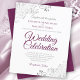 These affordable, budget friendly wedding invitations are the perfect choice for class, style, and beauty on a budget. The design features cassis purple or magenta and gray text on a classic white background with ornate silver gray curls and swirls in the corners. The typography includes fancy script lettering for a style that is at once simple and elegant. Wonderful way to invite your friends and family to share in your joy on your special day without breaking the bank.