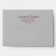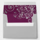 This beautiful gray wedding envelope is features a cassis purple, magenta, or berry colored inside flap with silver gray floral curls and swirls. There is a printed return address on the back flap in fancy script lettering. The design is understated and simple, yet classic, chic and ornate. Perfect way to make your wedding invitations all the more special.