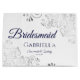 These beautiful gift bags are designed as a wedding gift or favor bag for your Bridesmaids. They feature a simple yet elegant design with silver faux foil lace frills and navy blue colored text reading "Bridesmaid" written in fancy script letters. There is also a place to enter her name, the couple's name, and the wedding date. Fill with gifts, favors, candy, or any other wedding swag or thank you gifts. Beautiful way to thank her for being a part of your special day.