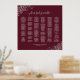 Silver Lace on Burgundy Alphabetical Seating Chart