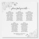 This beautiful wedding seating chart features a simple yet elegant gray and white design with a fancy script calligraphy title, and silver faux foil lace curls and swirls in the corners. There are seating assignments for 50 people at 5 tables, with 10 names per table. The names of the couple and wedding date are displayed at the bottom. Wonderful way to add a touch of elegance and class to your reception while making it easy for your guests to find their seats.
