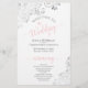 These wedding programs are elegant and tasteful, while still being budget friendly. The design features ornate silver gray faux foil lace with blush pink and gray text on a white background. The typography features lacy script calligraphy, and there is room for details on the ceremony, the bridal party, and a short thank you.