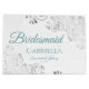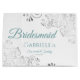 These beautiful gift bags are designed as a wedding gift or favor bag for your Bridesmaids. They feature a simple yet elegant design with silver faux foil lace frills and teal or turquoise colored text reading "Bridesmaid" written in fancy script letters. There is also a place to enter her name, the couple's name, and the wedding date. Fill with gifts, favors, candy, or any other wedding swag or thank you gifts. Beautiful way to thank her for being a part of your special day.