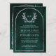 Silver Laurel Wreath Leaves Emerald Green Wedding Invitation