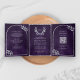 Silver Laurel Wreath Leaves Royal Purple Wedding Tri-Fold Invitation