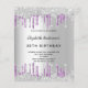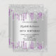 A modern, stylish and glamorous invitation for a woman's 30th (or any age) birthday party. A faux silver looking background with lavender, violet colored faux glitter drip, paint dripping look. The name is written with a black modern hand lettered style script. Personalize and add a name, age and party details.