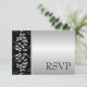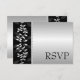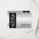 Send wedding guests this alluring RSVP card design featuring a silver gradient background adorned with a leafy border. Customizable text allows you to alter fonts, change text colors and sizes as you wish. Matching wedding stationery available with this design as well.