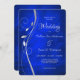 Silver Leaf Swirl Bright Blue Wedding Invitation