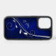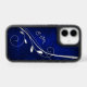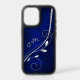 Here's an elegant phone case that features a modern silver leaf swirl against a deep royal blue gradient background. Your two letter monogram is at the left side in matching silver.