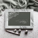 Geometric shapes and frames from silvery sage to dark moss green with marble accents are decorated with glittering botanicals to form the creative pieces in this elegant wedding suite. This coordinating wedding Guest Book features a marbled background with silver leaf accent on a dark green background. Easy to customize with your names and wedding date on the reverse using the provided template. Search ID876 to see other pieces in this beautiful suite.