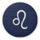 A silver chrome like Leo Zodiac symbol on a navy blue carbon fiber style design texture print background. A modern urban racy design for a great custom birthday gift idea.