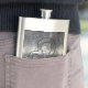 Silver Leo Zodiac Sign in Grunge Distressed Style Flask