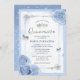 Silver Light Baby Blue Roses Elegant Quinceanera Invitation