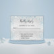 A faux silver metallic looking background, decorated with sparkling light blue faux glitter sparkles. Personalize and add the reply by date and your names.