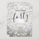 Elegant Glam Silver Glitter Lights 40th Birthday Script template featuring party program and menu text, glitter lights and modern typography script.