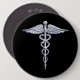Silver Like Caduceus Medical Symbol on Black Decor Button