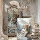 Silver Lining Parisian Fantasy Portrait & Parasol, White Blossoms, Vintage Romance, Furniture Decoupage.