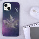 This pretty personalized phone case has a purple pink gradient background that is slightly distressed. At the center is a shiny silver maple leaf image. Your name or monogram is above it at the right side. You may change the font, if you'd like, by customizing.