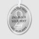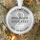 Silver Medal Ornament for second place runner up. Custom Medal acrylic ornament for number two. Faux shiny award for 2nd place prize winner. Add your own personalized text. Elegant gift idea for contest winner, game champion, sports achievement, office champ, athlete, school team, promotion, Birthday party, wedding game, tournament etc. Customizable first place medallion in a competition. Upload your own photo on the back optionally.