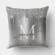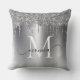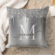 Silver Metal Glitter Drips Monogram Name Throw Pillow