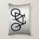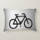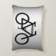 This decorative accent pillow features an abstract pattern of a black bicycle on a silver, gray and white metallic background.