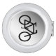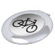 This elegant, decorative compact mirror features a contemporary design of an abstract black bicycle on a silver, gray and white metallic background.