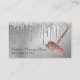This girly and glamorous makeup artist business card is perfect for a stylish and trendy professional businesswoman. It features faux printed sparkly silver glitter drips and rose gold glitter broom on top of a silver brushed metallic background. The typography is an elegant cursive script with a modern serif font to match. It's chic, pretty, unique, and luxurious; the perfect way to advertise your business and stylize your marketing and advertisement material for your customers.